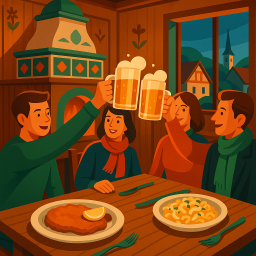 Let's say Peter has a great morning and decides to take his three friends to Goldener Stern Friedberg at 6 PM the same day.