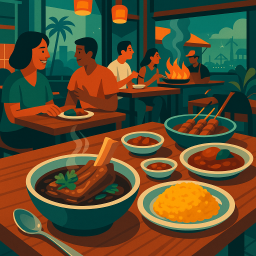 Let's say Peter has a great morning and decides to take his three friends to Konro Karebosi at 6 PM the same day.