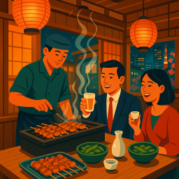 * Peter can now enjoy the dinner with his friends at Makitori Shinkōbe Minato City!