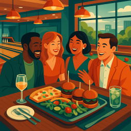 The food was tasty, but we had to wait 25 minutes before seeing our server. We even had to ask the hostess for some water. It was also quite chaotic, with a lot of kids running around. Overall, it felt pretty hectic and was pretty loud.