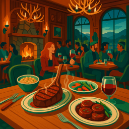 The ambiance reminds me of a ski/hunting lodge.