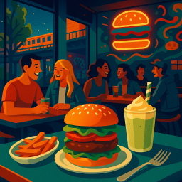 * Peter can now enjoy the dinner with his friends at Shiso Burger Kantstr Berlin!