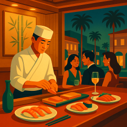 Let's say Peter has a great morning and decides to take his three friends to 鮨やまもと / Sushi Yamamoto Beverly Hills at 6 PM the same day.