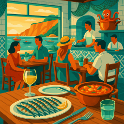 Let's say Peter has a great morning and decides to take his three friends to Taberna d'Adelia Nazaré at 6 PM the same day.